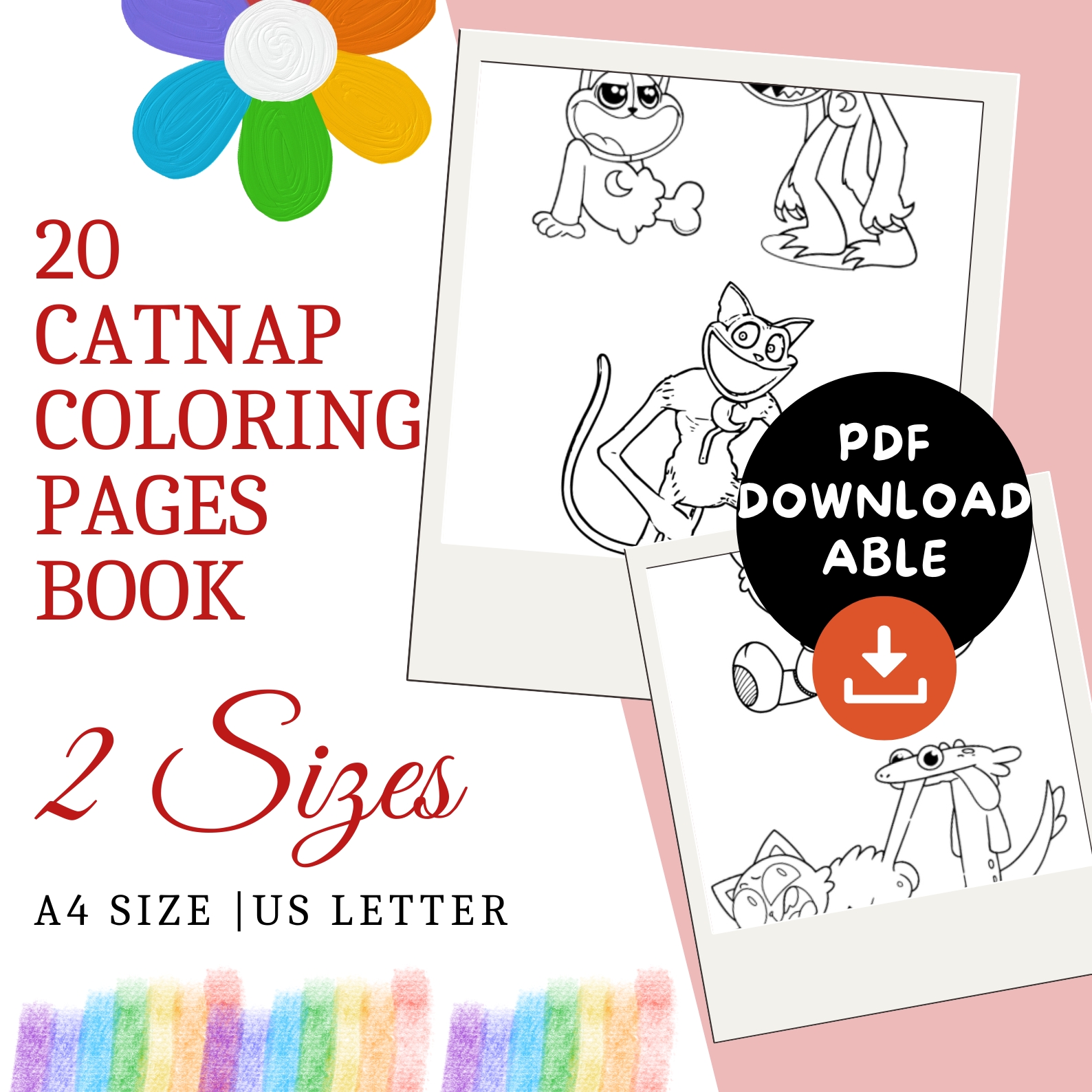 Catnap Coloring Page Printable PDF Relaxing Cat Coloring Sheet A4
