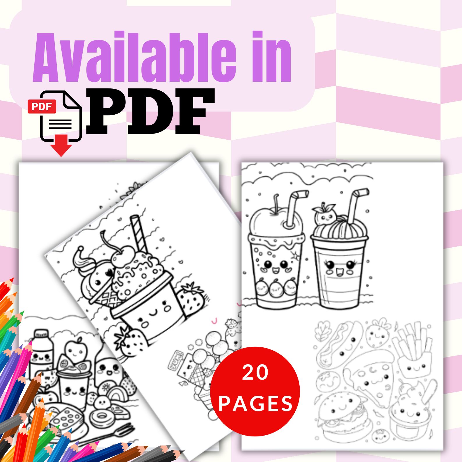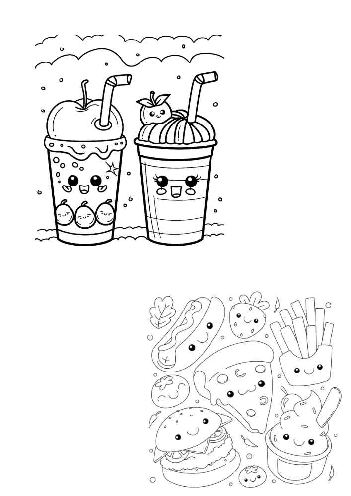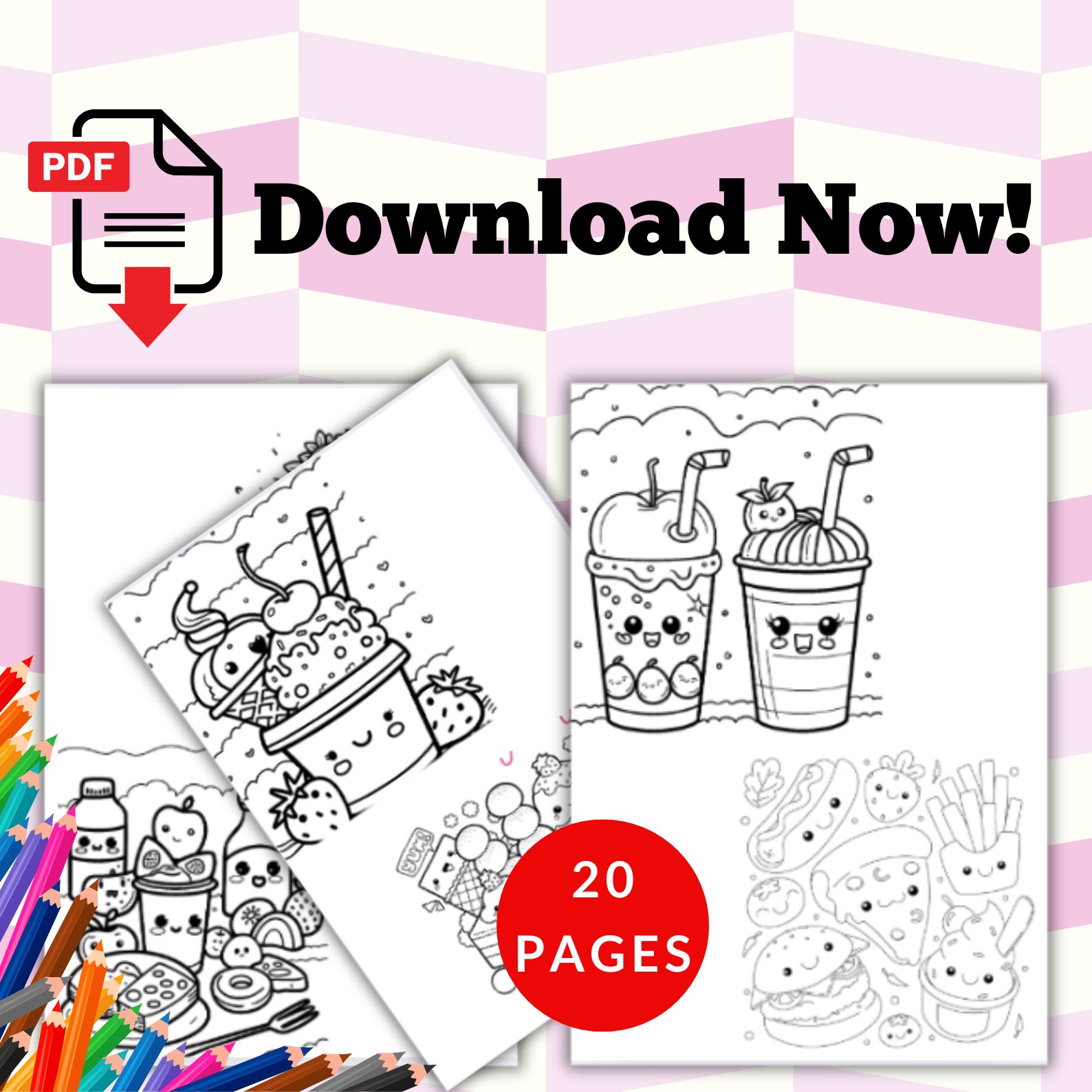 Bring your favorite foods to life with 20 adorable coloring pages! Perfect for kids, teens, and adults who love cute food illustrations.