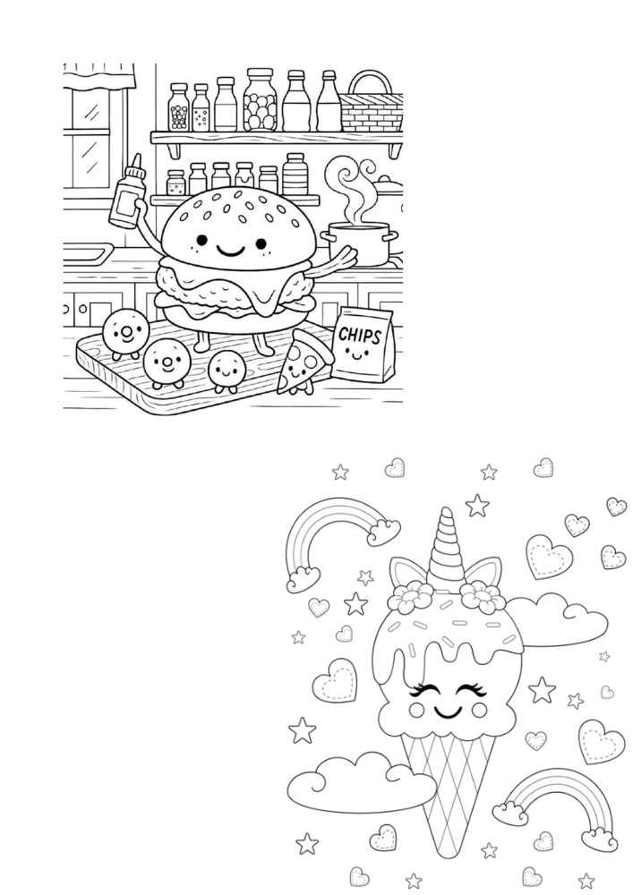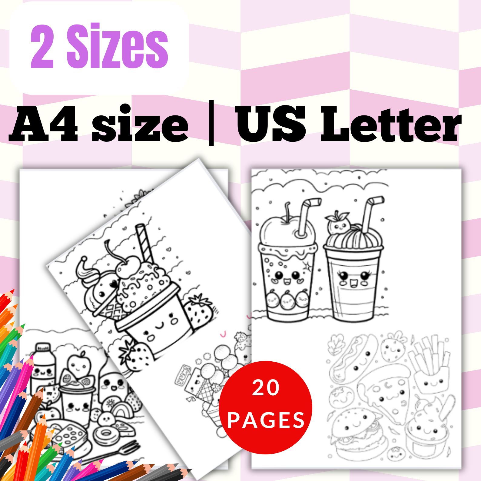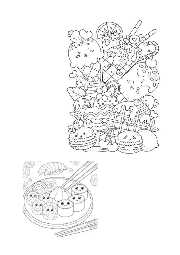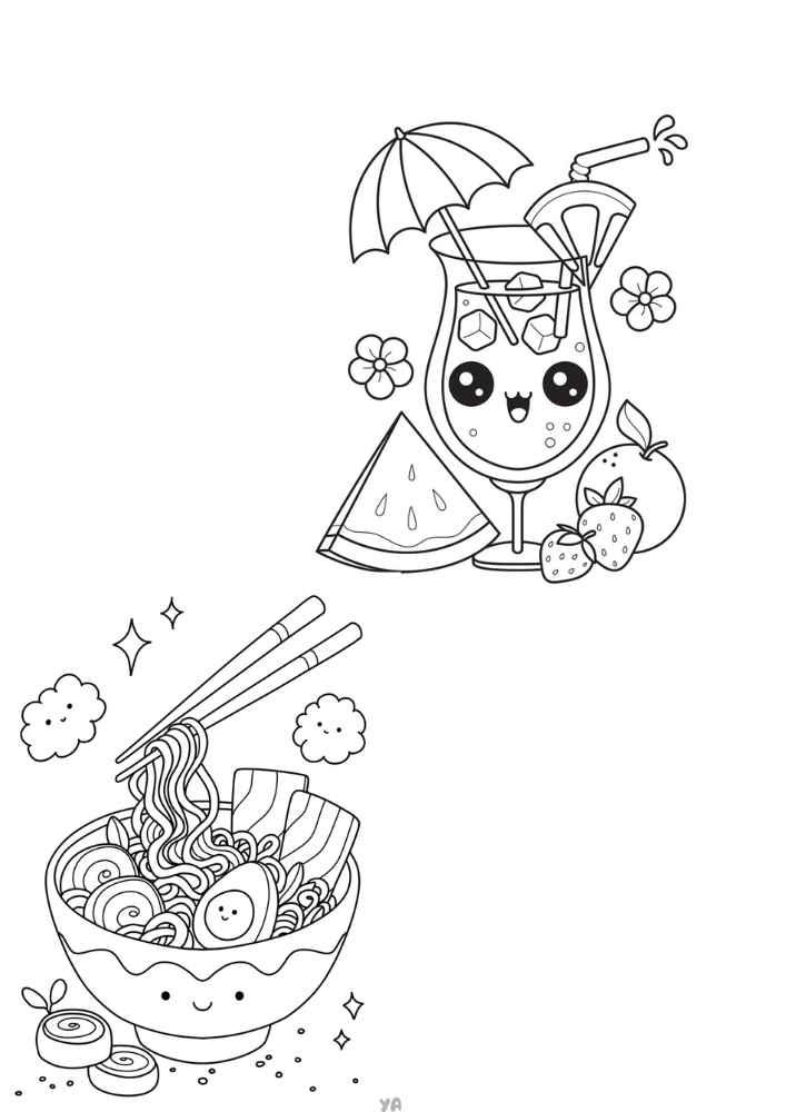 Bring your favorite foods to life with 20 adorable coloring pages! Perfect for kids, teens, and adults who love cute food illustrations.