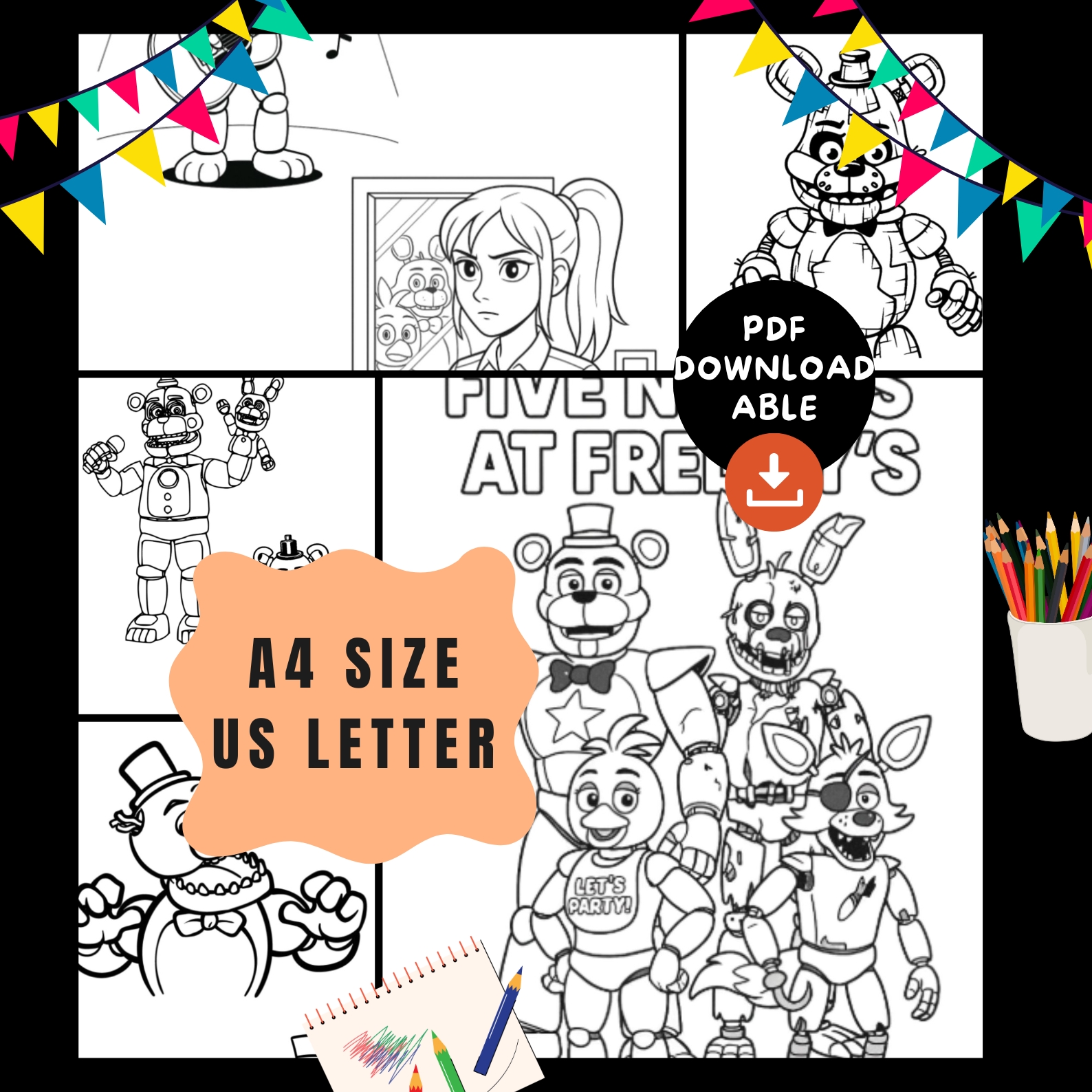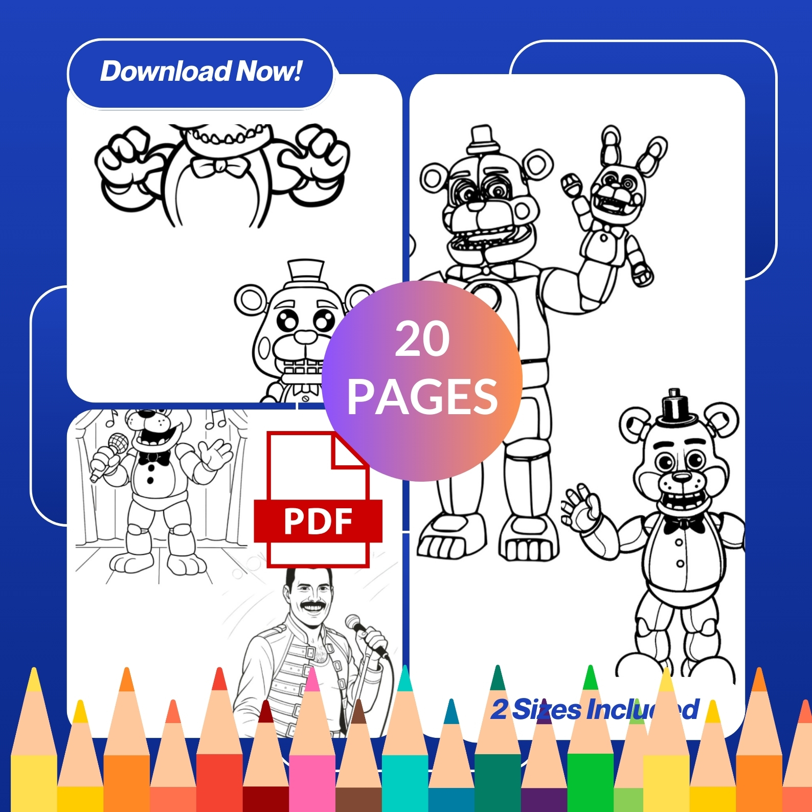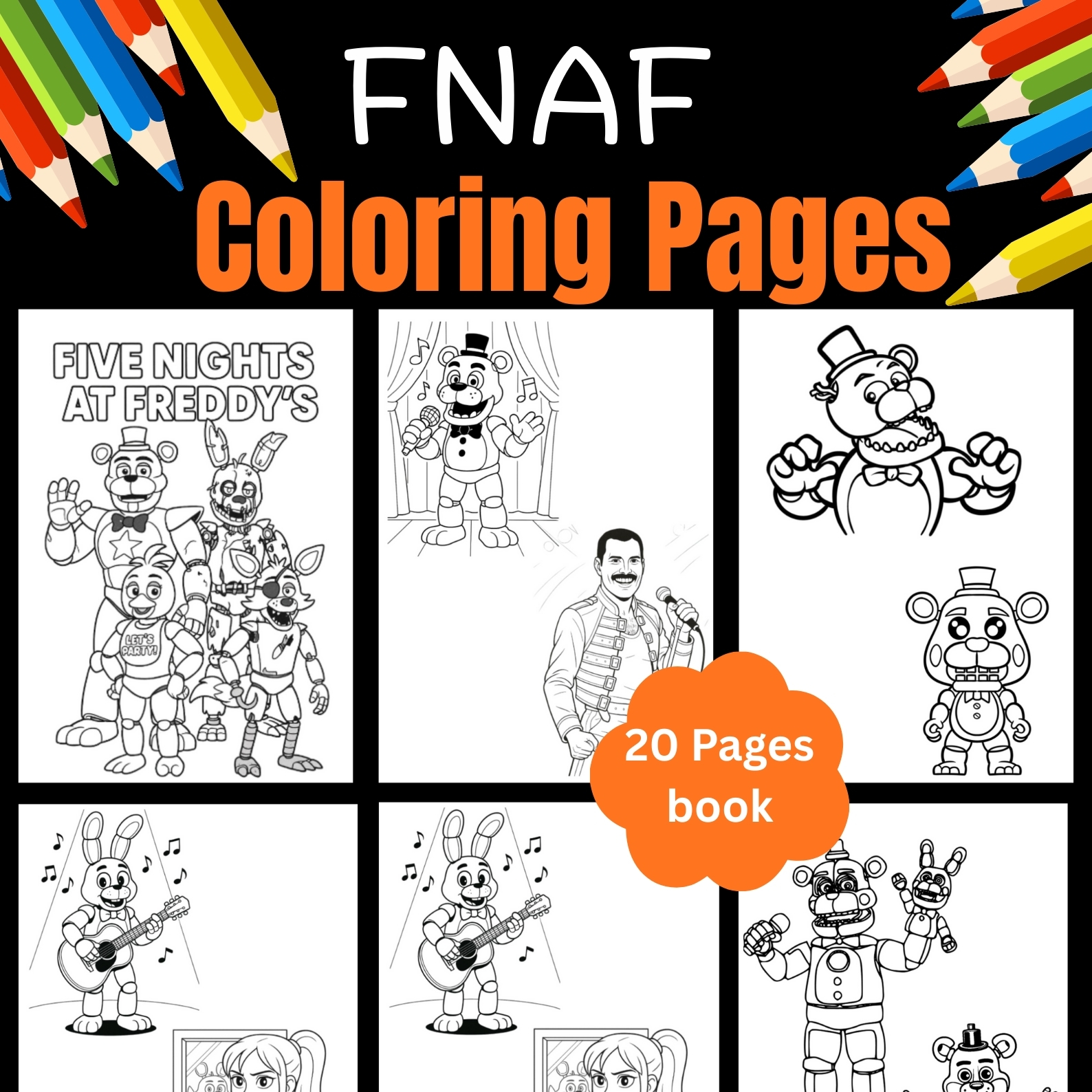 • 20 high-quality FNAF coloring pages