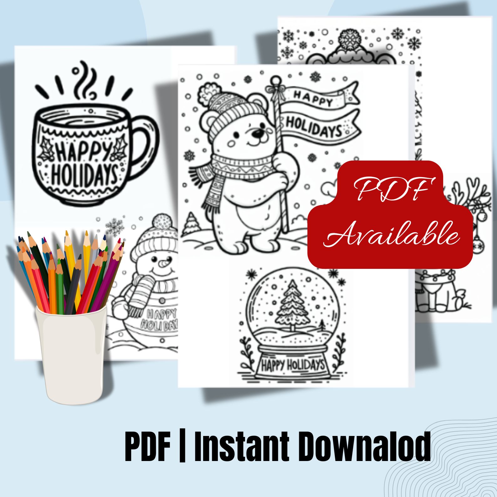 Holiday Coloring Pages Printable PDF Instant Download