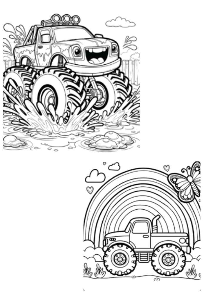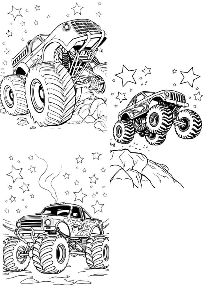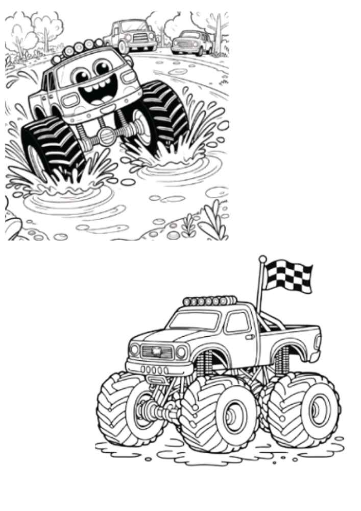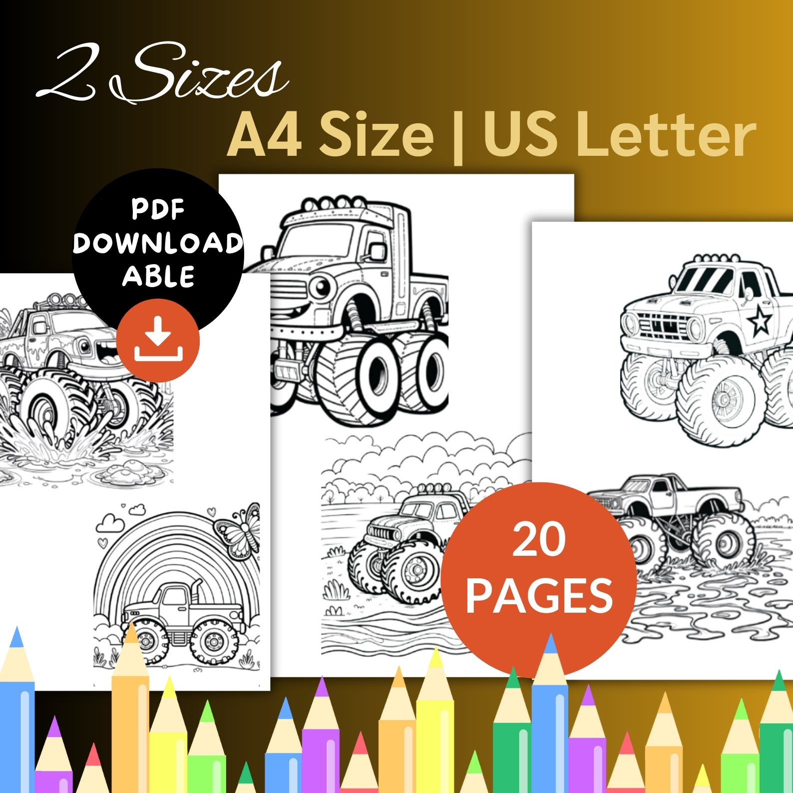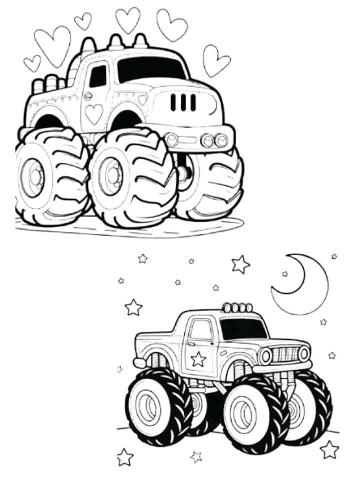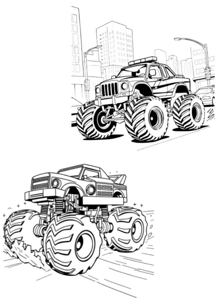 This is a printable PDF file in A4 size, making it easy to print at home or at your favorite print shop. Enjoy hours of fun coloring detailed monster trucks, fire trucks, garbage trucks, and more. Ideal for birthday activities, classroom projects, or creative downtime.