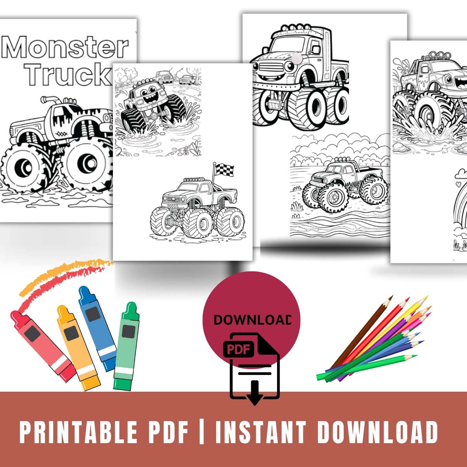 Monster Truck Coloring Page PDF Printable A4 Digital Download