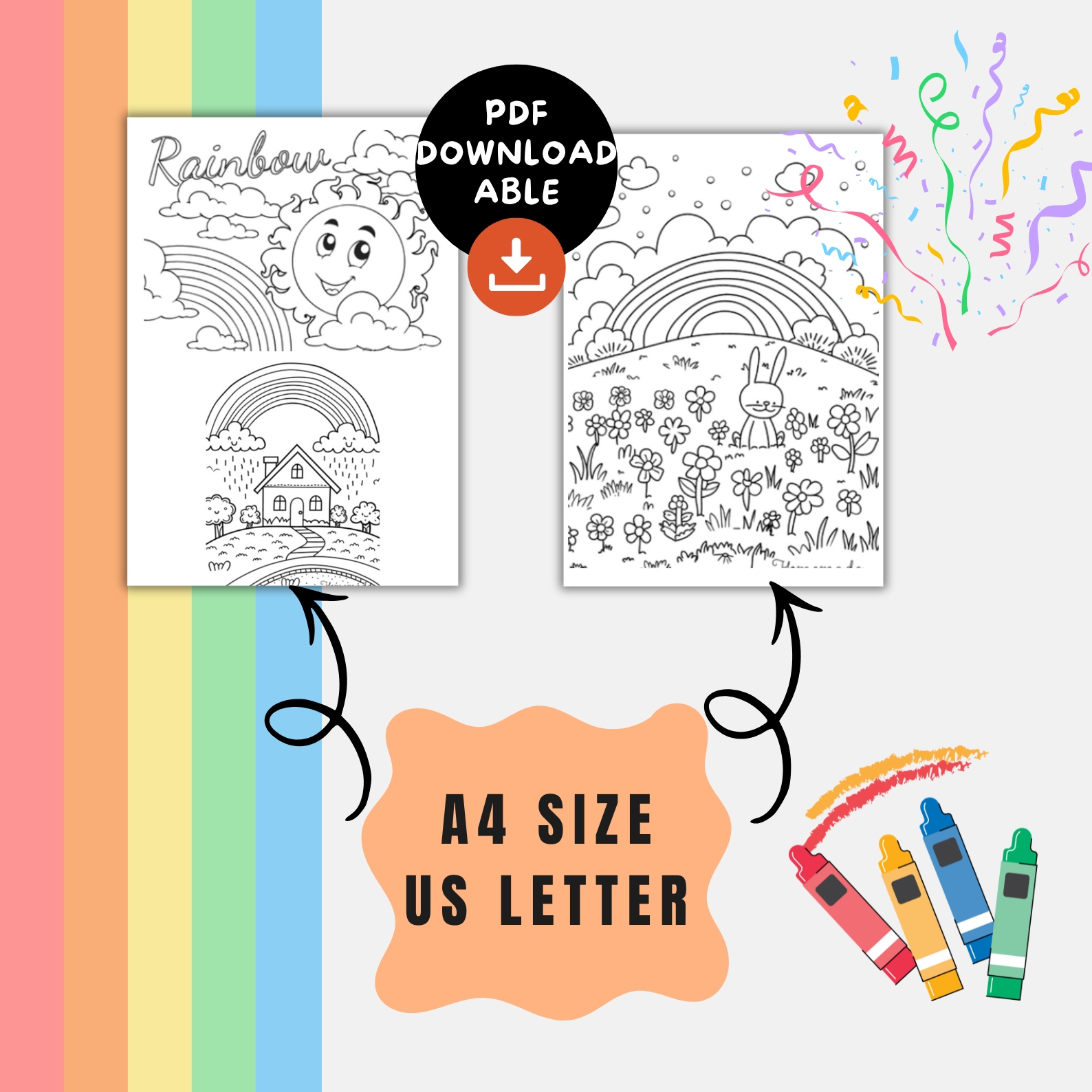 Rainbow Coloring Page PDF Printable A4 Digital Download