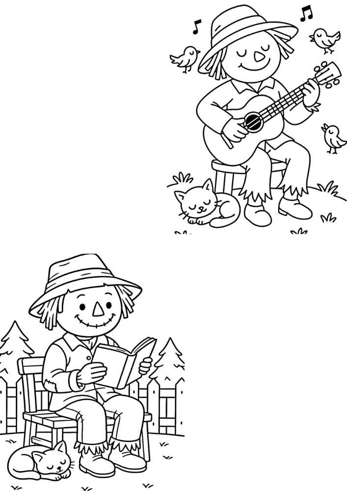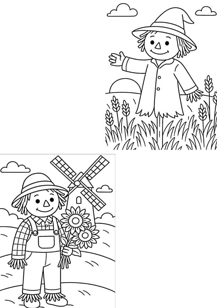 • 20 high-resolution scarecrow coloring pages (PDF format)