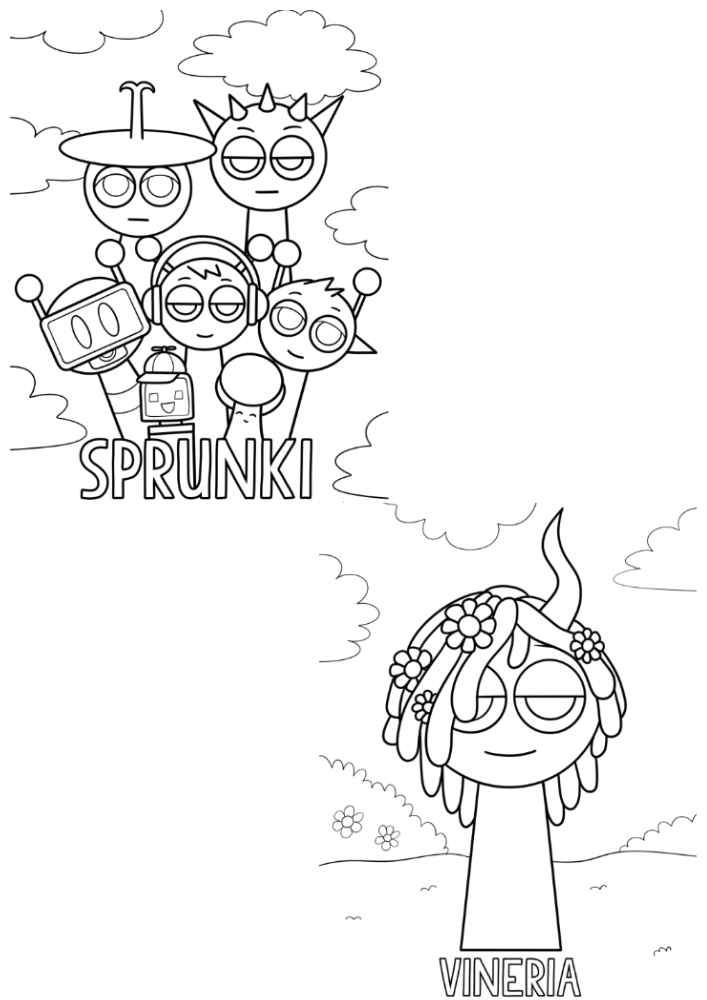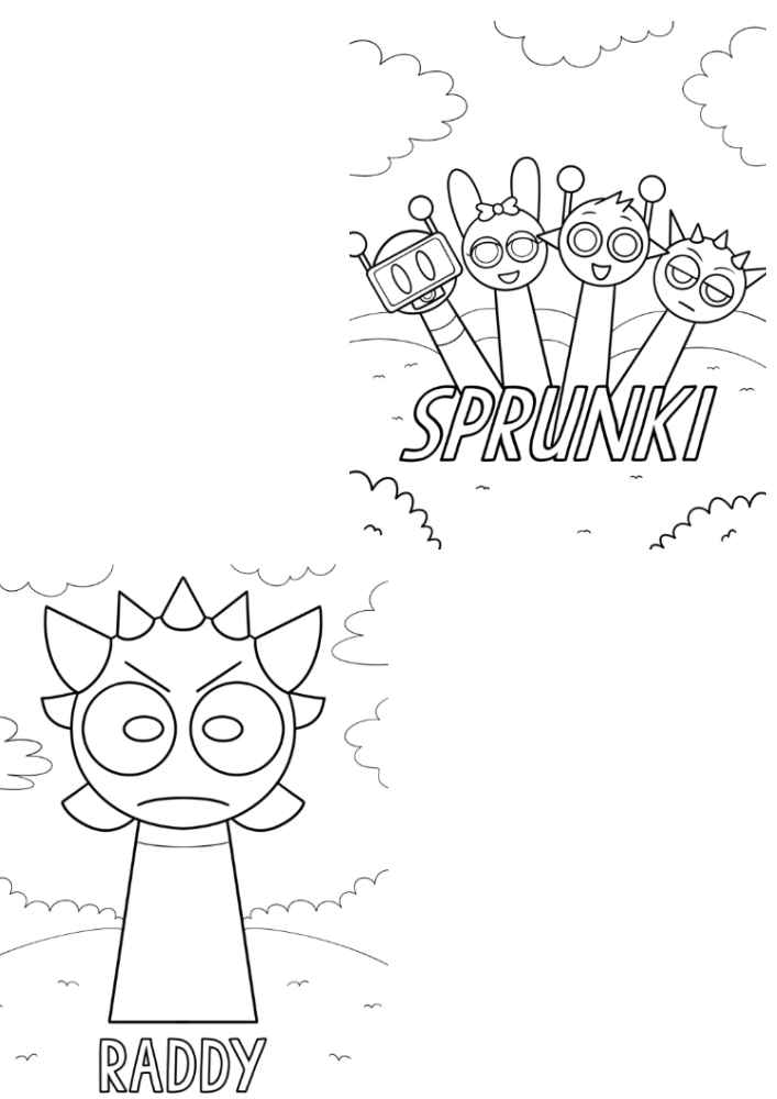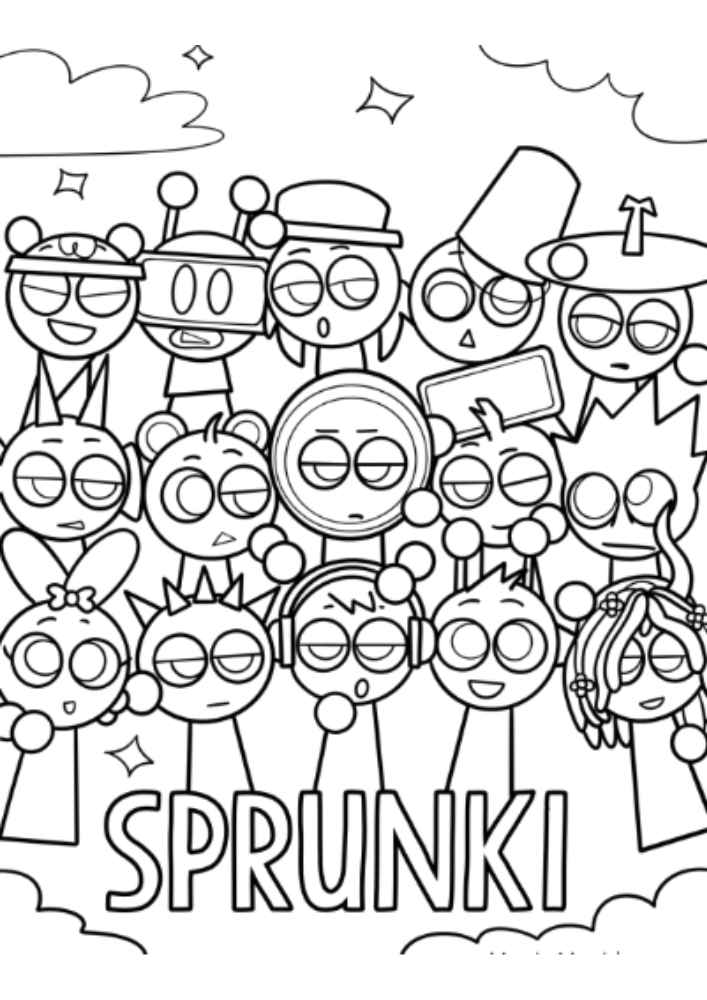 Bring the fun of Sprunki to life with this 20-page printable coloring collection. Each page features playful and creative Sprunki designs, perfect for kids and fans who love imaginative coloring.