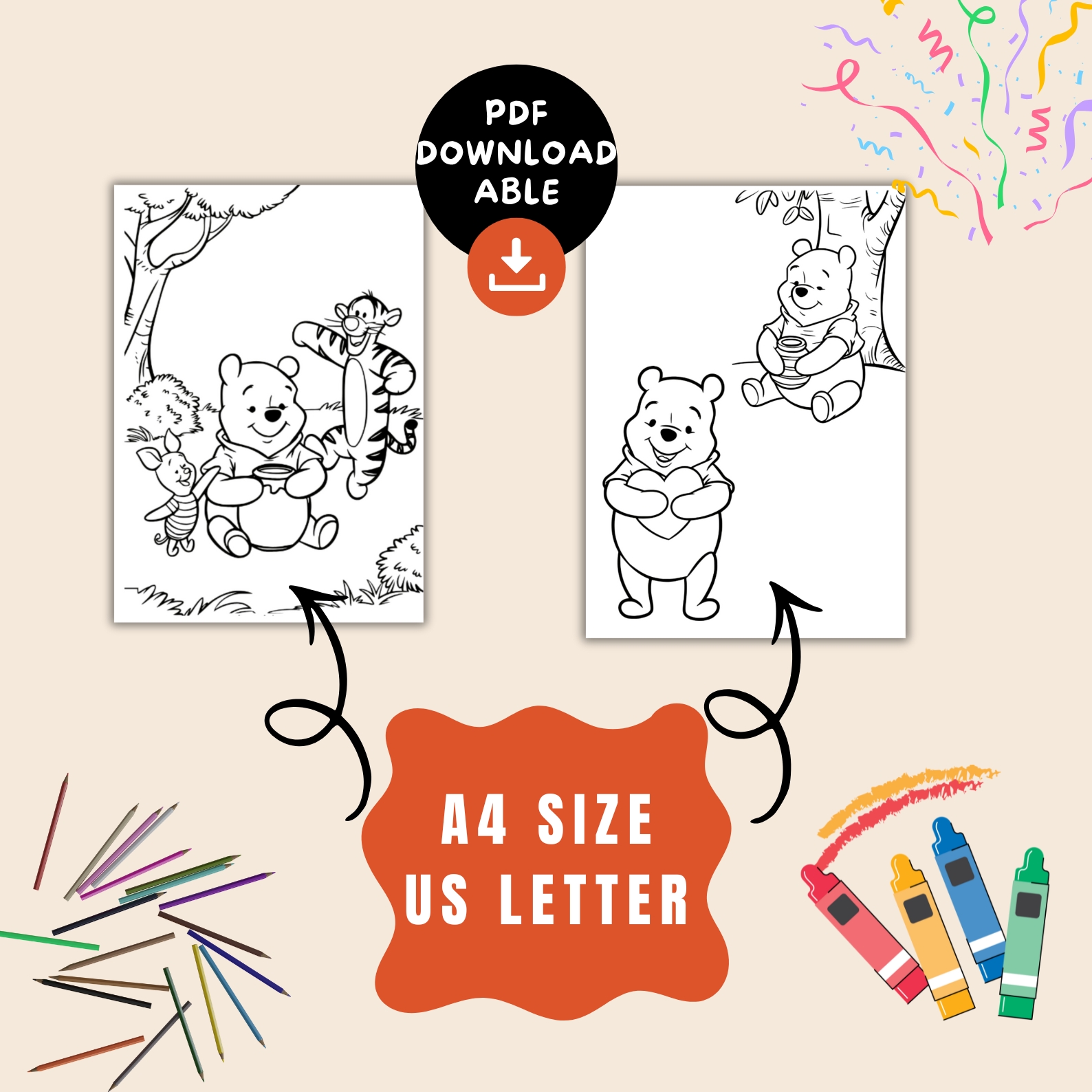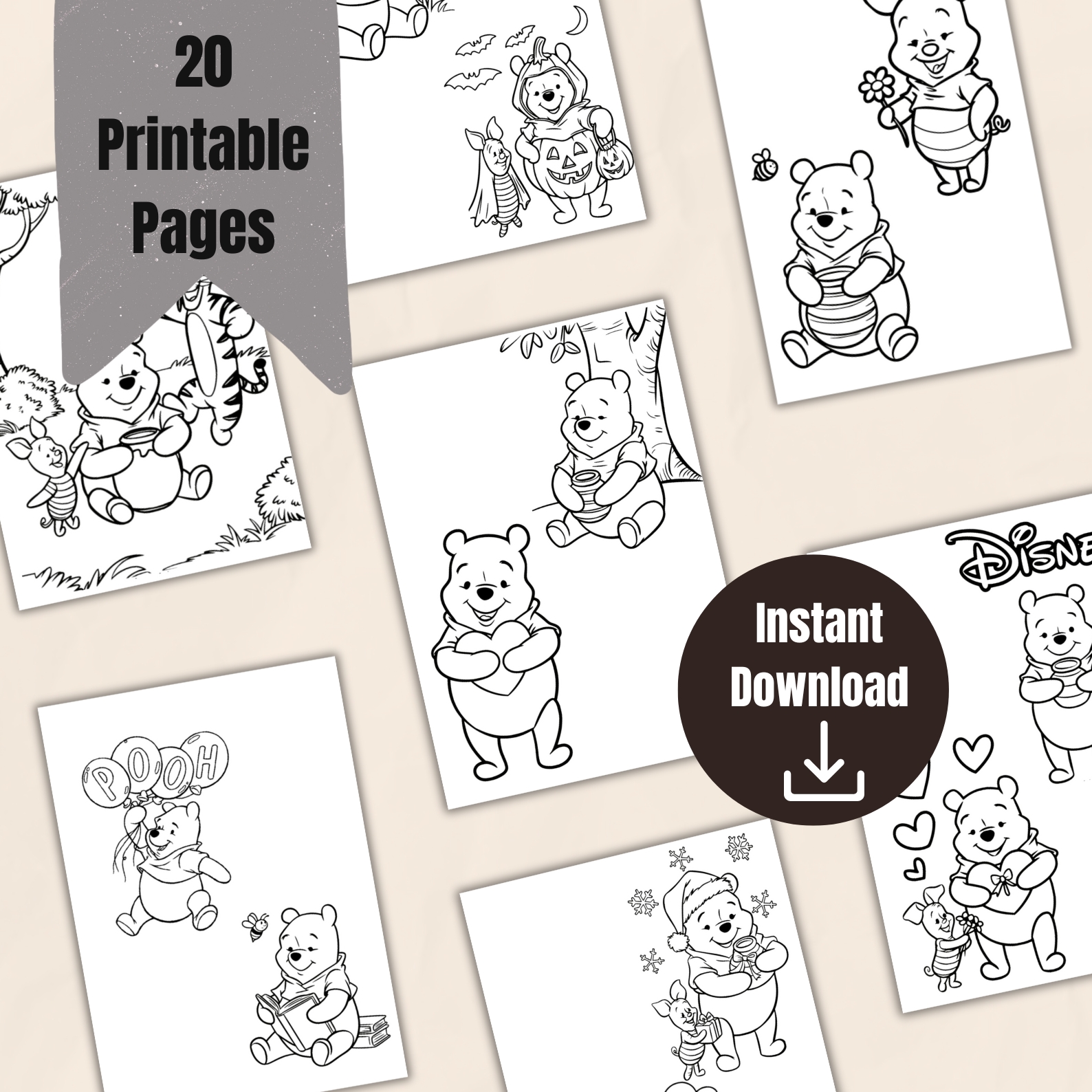 Bring the magic of the Hundred Acre Wood to life with this 20-page printable Winnie the Pooh coloring collection. Each page features your favorite characters. Pooh, Piglet, Tigger, and friends, in charming scenes perfect for kids and fans of all ages.